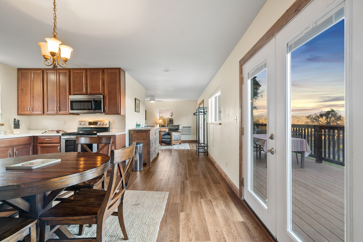Charming refurbished Miners House built during the California Gold Rush, with beautiful views for miles. Located in Jamestown, CA, just 41 miles from the Yosemite National Park Entrance at Big Oak Flat. One of two homes set on over 14.25 acres of land. Relax and enjoy scenic views. Spectacular sunrise, and sunsets. Guests love the night sky views from the balcony; a stargazers paradise. No street lights. Located 3.3 miles from downtown Jamestown and 6 miles from downtown Sonora.