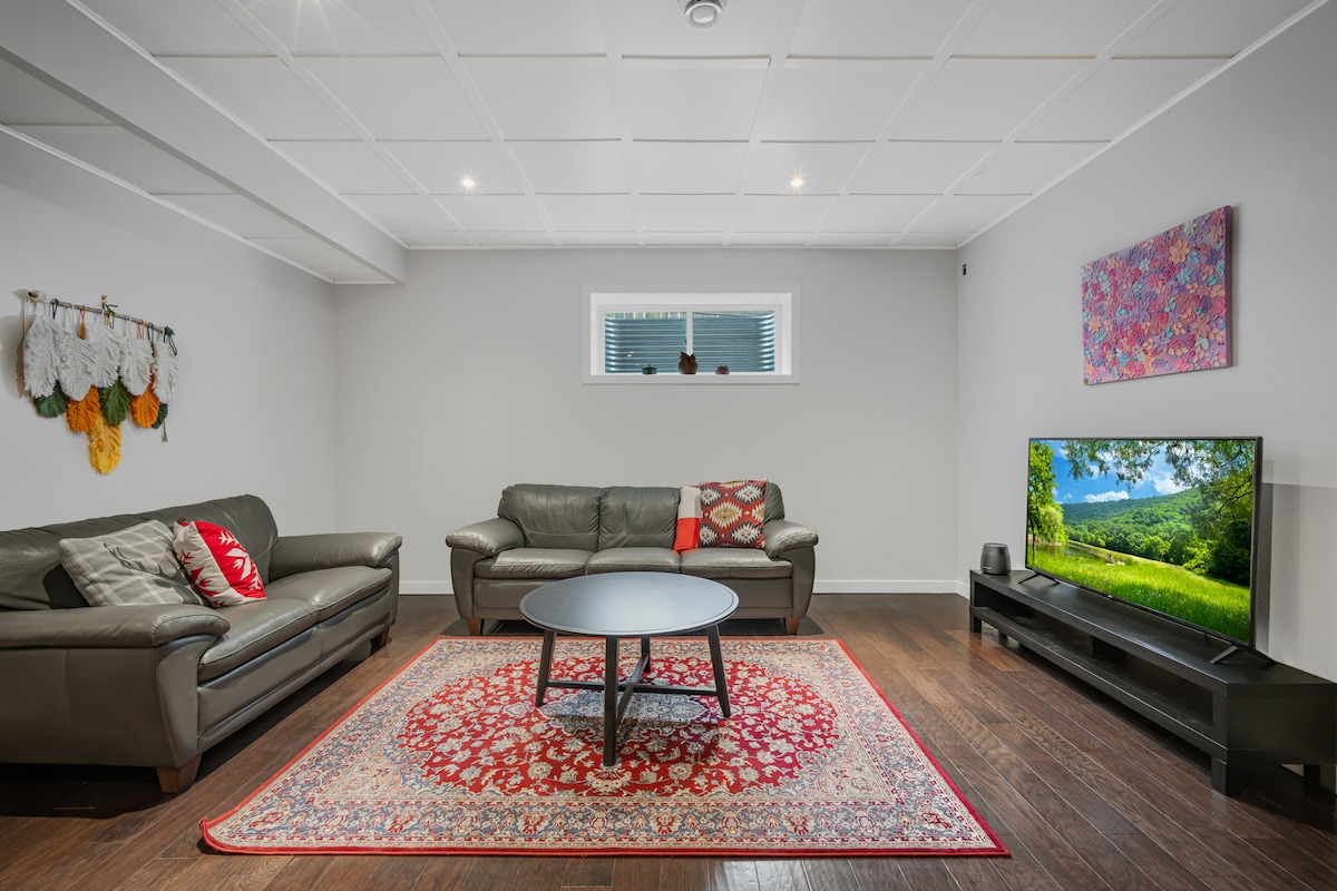 Updated Lower-Level Private Suite with Private Entrance Welcome to your perfect getaway in NW Calgary! This fantastic, fully private suite offers all the comforts of home. With 9-foot ceilings and large windows, the space feels bright and inviting, offering a comfortable retreat. We’ve had the pleasure of hosting guests from around the globe, from short visits to extended stays. We’re excited to welcome you and make your time in Calgary unforgettable!