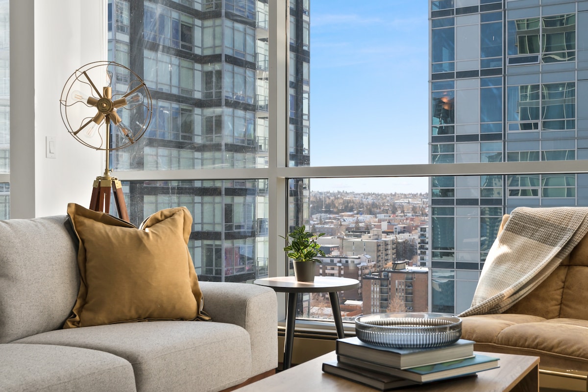 Welcome to our newly constructed Nude Building studio condo in downtown Calgary! It features expansive floor-to-ceiling windows that invite in abundant natural light, a cozy queen bed, a plush sofa and a fully stocked kitchen. Venture out to the lively 17th Avenue, just moments from your doorstep, brimming with fashionable boutiques and dining choices. Whether you're here for business or leisure, our studio provides convenience at the city's core, accompanied by captivating city skyline view.
