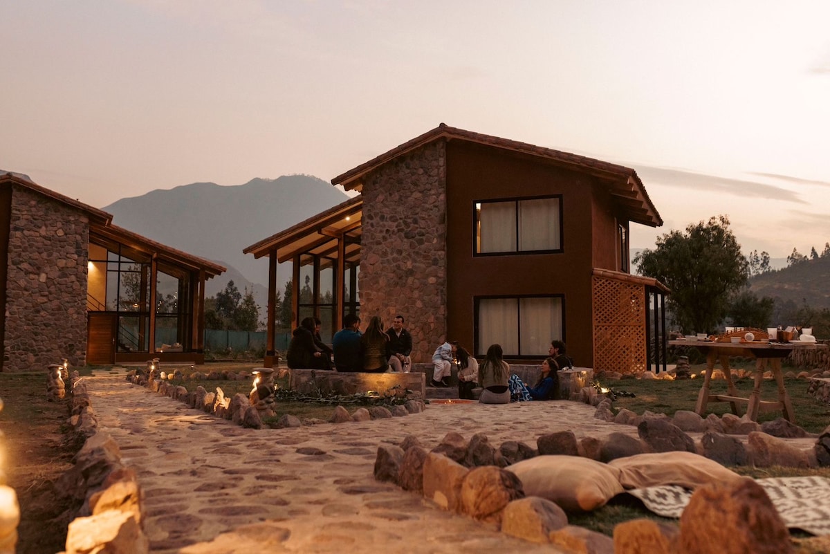 Ubicado en el Corazón Del Valle Sagrado, rodeado de Montañas, muy cerca a los principales atractivos Turísticos, tenemos los espacios ideales para disfrutar de la Naturaleza, caminatas, ciclismo, running y actividades místicas. Nuestros espacios cuentan hamacas, zona de Fogata, jardines, balcones y chimenea. Tendrás la cocina, sala y comedor totalmente equipada. Somos amigables con las mascotas ahora los puedes traer y sentirse como en casa.