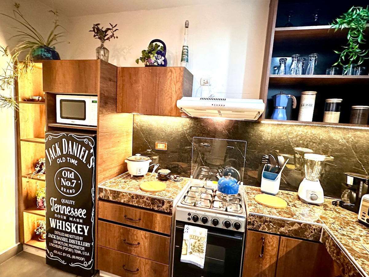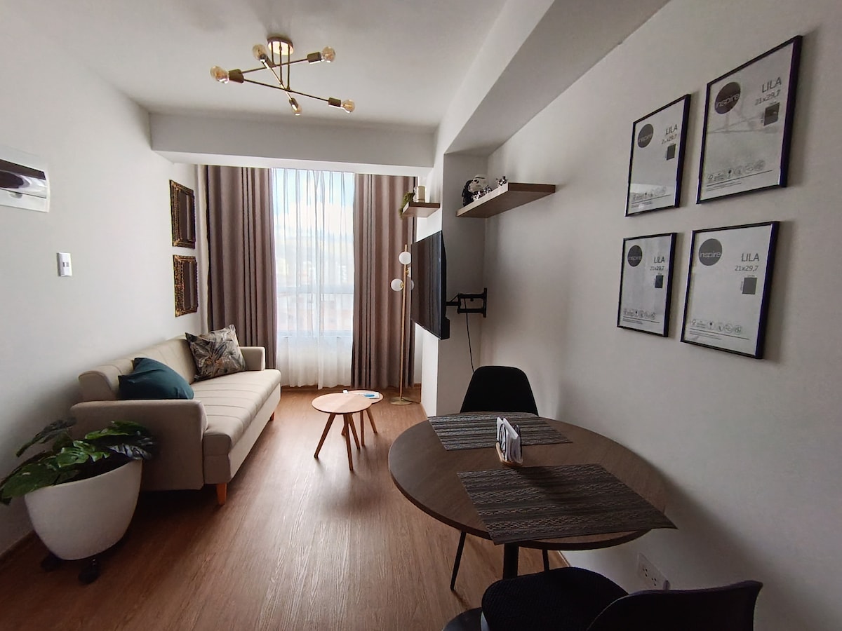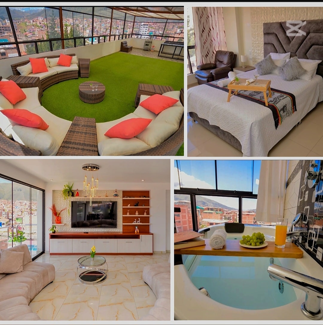 Moderno y confortable studio ubicado en una zona céntrica de Cusco, donde podrás encontrar muy cerca supermercados, restaurantes, farmacias, entidades bancarias y financieras, casas de cambio, clínicas de salud y otros, decoración moderna sencilla, funcional, acogedor y bien iluminado. Sala con Wifi, Netflix, Cable mágico, sofá confortables, kitchenette totalmente equipado, ducha con abundante agua caliente las 24 horas, terraza con sombrilla y vista panorámica de la ciudad.