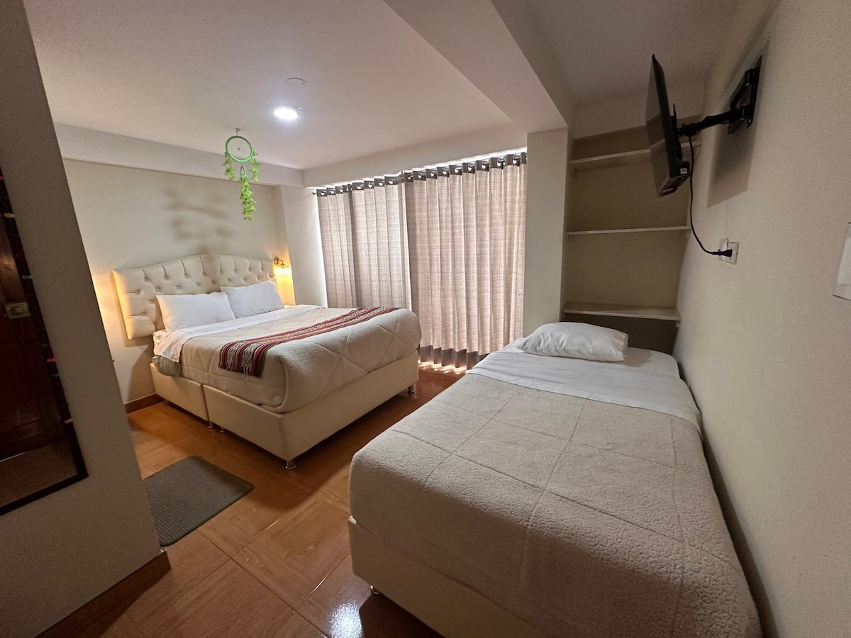 Casa Familiar Ubicado ( tercer piso) en el centro de la ciudad a dos cuadras de la plaza de armas, mercado tipico ,templo del sol, enfrente supermercado, farmacias ,casas de cambio, buses de transporte público y taxis de la puerta ,vista panorámica de la ciudad, zona segura. Ingreso independiente. Habitaciones privadas con baño dentro de la habitación y otras con baño privado fuera de ellas. WI FI en todo el hospedaje. Te sentirás como en casa. ofrecemos desayuno con pago.