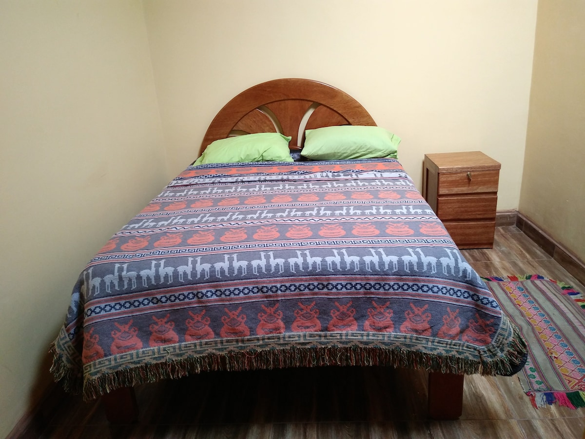 ¿Buscando una habitación linda y económica? Tenemos para ti esta habitación muy bien iluminada, un baño privado con agua caliente las 24 hrs ,wifi de alta velocidad , un cama muy cómoda y un escritorio para trabajo remoto y para que te diviertas una TV de 32 pulgadas con cable para que disfrutes de series y películas, también incluye toallas y jabón. Nuestra ubicación es perfecta en relación a el aeropuerto y el terminal de buses, estamos a unas 13 cuadras de la plaza de armas a 10 min en taxi.