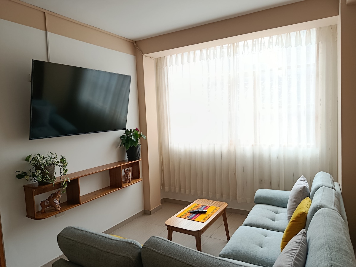 Te sentirías como en casa, cómodo departamento con todo lo que necesitas en pleno centro de la ciudad a dos cuadras de la Plaza de Armas, cerca a todos los atractivos turísticos, no necesitas movilidad para desplazarte por el Centro Historico del Cusco. El departamento es completamente independiente con ingreso propio donde tendras absoluta libertad de movimiento. Zona tranquila y silenciosa ideal para trabajo remoto. Cuenta con TV 55" Smart y WiFi de alta.