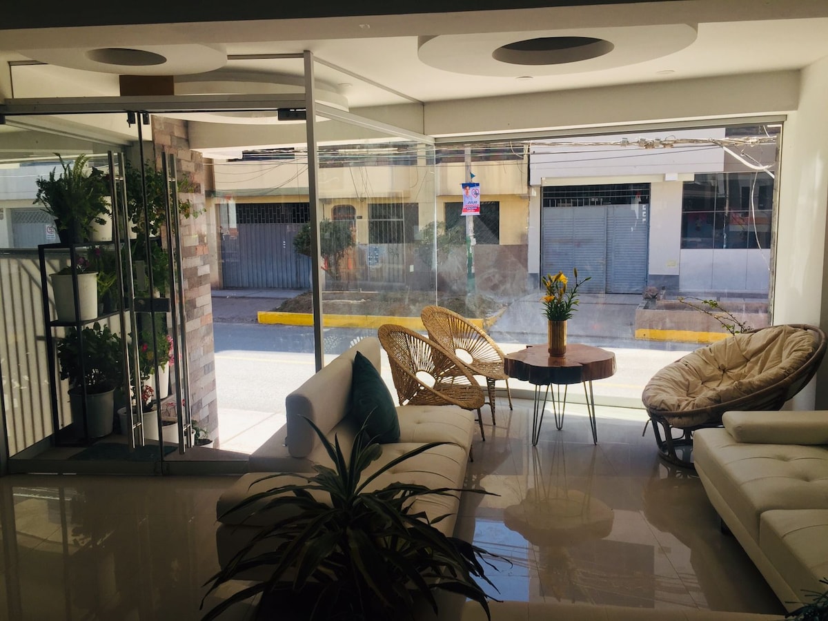 Contamos con wifi rápido y confiable, además tenemos cochera si es tu necesidad la atención es personalizada y somos amigos de la higiene y seguridad donde estarás, esta cerca a bancos, supermercados, farmacias y otros, es un lugar céntrico y bastante tranquilo.