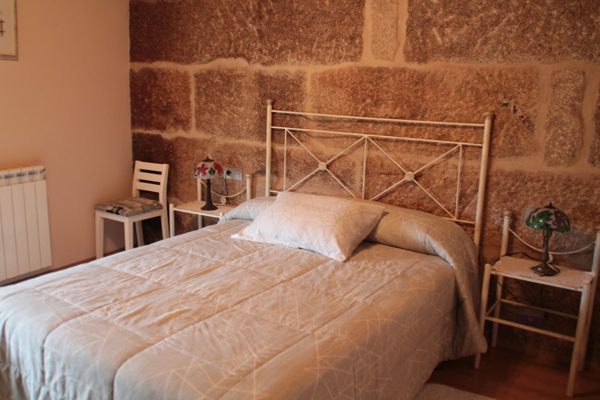 Casa Merteira ha sido totalmente rehabilitada y diseñada para desconectar. Ubicada a las afueras de la ciudad, en una zona tranquila a 5min. en coche de la estaciòn intermodal y del centro; disponemos de parada de bus urbano enfrente del alojamiento. Allariz o Ribadavia estàn a 20min en coche, la Ribeira Sacra a 45min; Vigo o Santiago a 1h. Se distribuye en salón-cocina, baño y habitación doble en el piso inferior y habitación doble con baño en el piso superior.