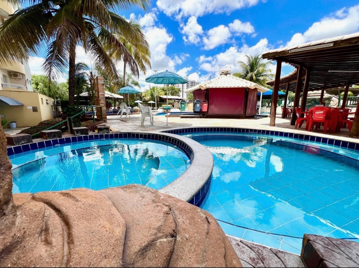 Relaxe em um condomínio com piscina quente, hidromassagem e piscina coberta, perfeito para quem quer descanso e lazer em Caldas Novas. Ideal para casais ou famílias de até 4 pessoas. Bem localizado, no centro, próximo de: * Barzinhos * Restaurantes * Supermercado * Farmácia * Sorveteria