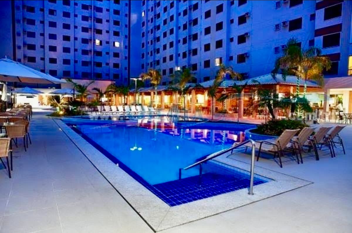 💦 Acorde e dê um mergulho! Flat térreo exclusivo, localizado literalmente a poucos passos das piscinas termais. 📍 Praticidade: Térreo (sem elevador/escadas), ideal para crianças e idosos. ✅ Conforto: 2 Banheiros (raridade!), Ar-condicionado(suíte) e Wi-Fi. 🏊 Lazer: Acesso total ao parque aquático 24h e descontos no Acqua Park/Splash. • O Resort conta com restaurante, sauna, salão de jogos, brinquedoteca, academia, piscinas aquecidas, piscina fria, jacuzzi, toboágua e bar.