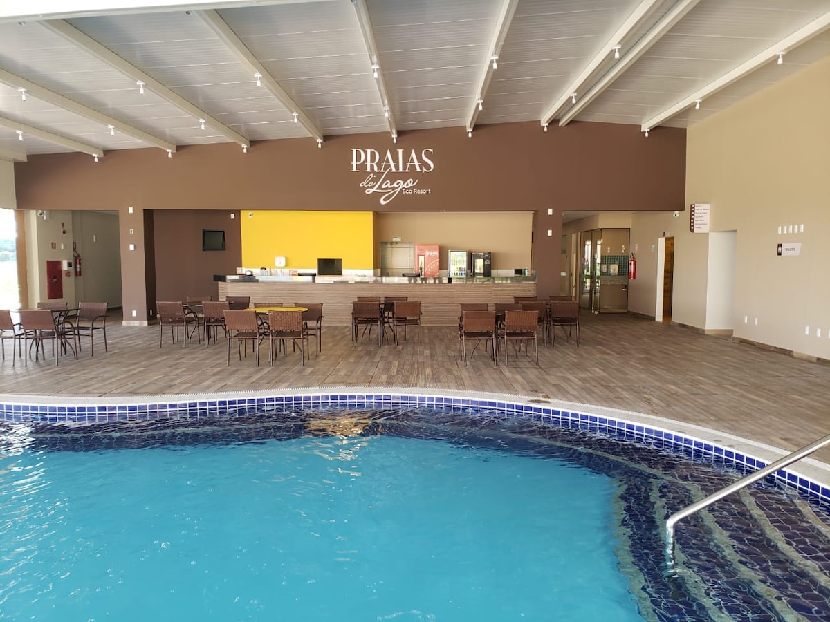 Praias do Lago Eco Resort é um complexo de lazer com várias piscinas, quadra de esportes, salão de jogos, academia, cinema, brinquedoteca, vários ambientes para descanso e relaxamento, e uma praia particular às margens do lago Corumbá com muitas opções de lazer. Restaurante e outras comodidades estão disponíveis mas são pagos à parte. Em Caldas Novas há vários parques aquáticos com águas termais e muitas outras atrações. Próximo ao Praias do Lago temos o Náutico Praia Clube com piscina de ondas.