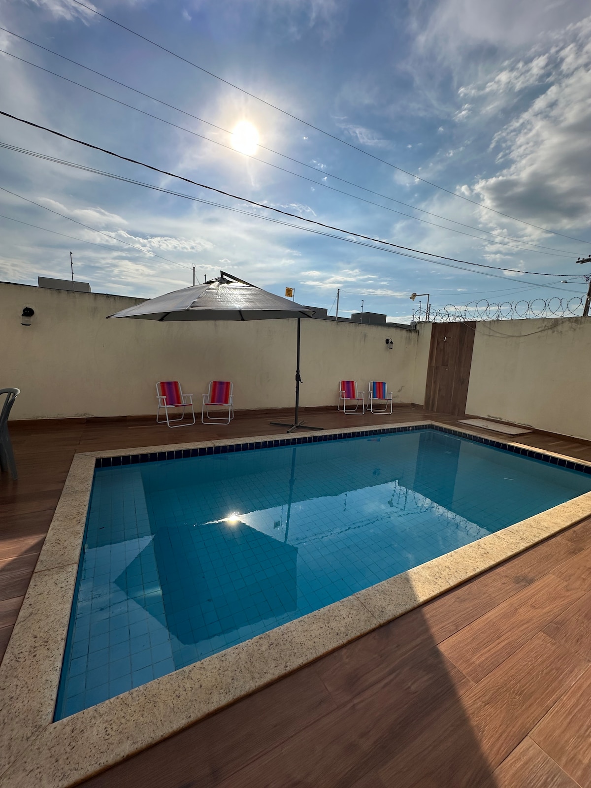 Piscina quentinha sem se preocupar com o sol? Venha desfrutar da minha residência, longe dos condomínios e prédios com suas área de lazer compartilhada. Aqui você desfruta de todo conforto e privacidade com garantia de uma piscina aquecida com sistema híbrido (não depende do clima ou sol). São 3 quartos (2 suítes), WiFi, TV com Disney, Netflix, Max, ar condicionado, garagem, churrasqueira, cozinha completa, roupa de cama, berço. Tudo isso na região central da cidade e com mercado pertinho.