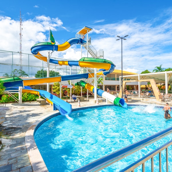 Possui estacionamento coberto, áreas comerciais, de lazer e comuns. Dois quartos com ar condicionado composto por uma suíte com cama de casal e 1 quarto com duas camas de solteiro e um sofá-cama na sala. Parque aquático possui 4 piscinas de água termal para adultos, sendo 1 coberta; 1 piscina de água termal infantil; 1 de água fria adulto. 3 ofurôs, sauna, academia, salão de jogos, cineminha, brinquedoteca, quadra de esportes e playground seco/molhado. Restaurante, bar e loja de conveniência.