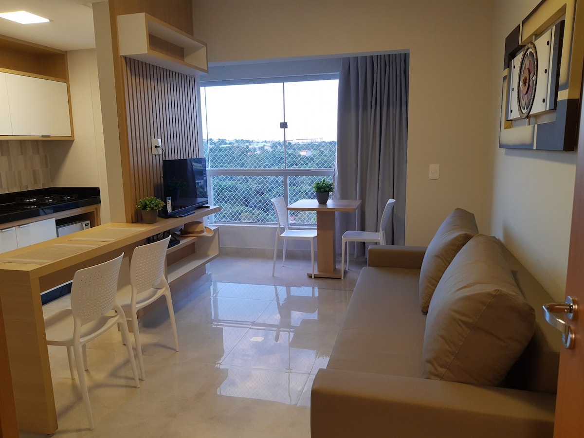 Bem vindos ao Parque das Águas Quentes 🌟Águas thermais naturais, piscinas quentinhas 🌟 Sinta-se em casa neste belíssimo apartamento de 2 suítes, na melhor localização de Caldas Novas. Apto possui 80 metros quadrados, bem confortável p/ estadia em família e amigos. Possui cozinha completíssima, com todos os utensílios. A varanda é um charme, espaçosa e com uma linda vista! 😀 A localização é privilegiada, no reduto gastronômico de bares e restaurantes da cidade. Aproveite! 😉
