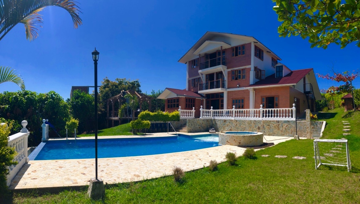 Despampanante propiedad tipo campestre recién construida ubicada en Cerritos a 3 minutos de la vida principal, cuenta con 6 bellas y cómodas habitaciones con baño privado, piscina, jacuzzi, turco, sauna, billar, ping pong, cancha de mini futbol, cancha de voleibol, zona BBQ, zonas verdes y hermosa vista para el deleite de nuestros huéspedes.