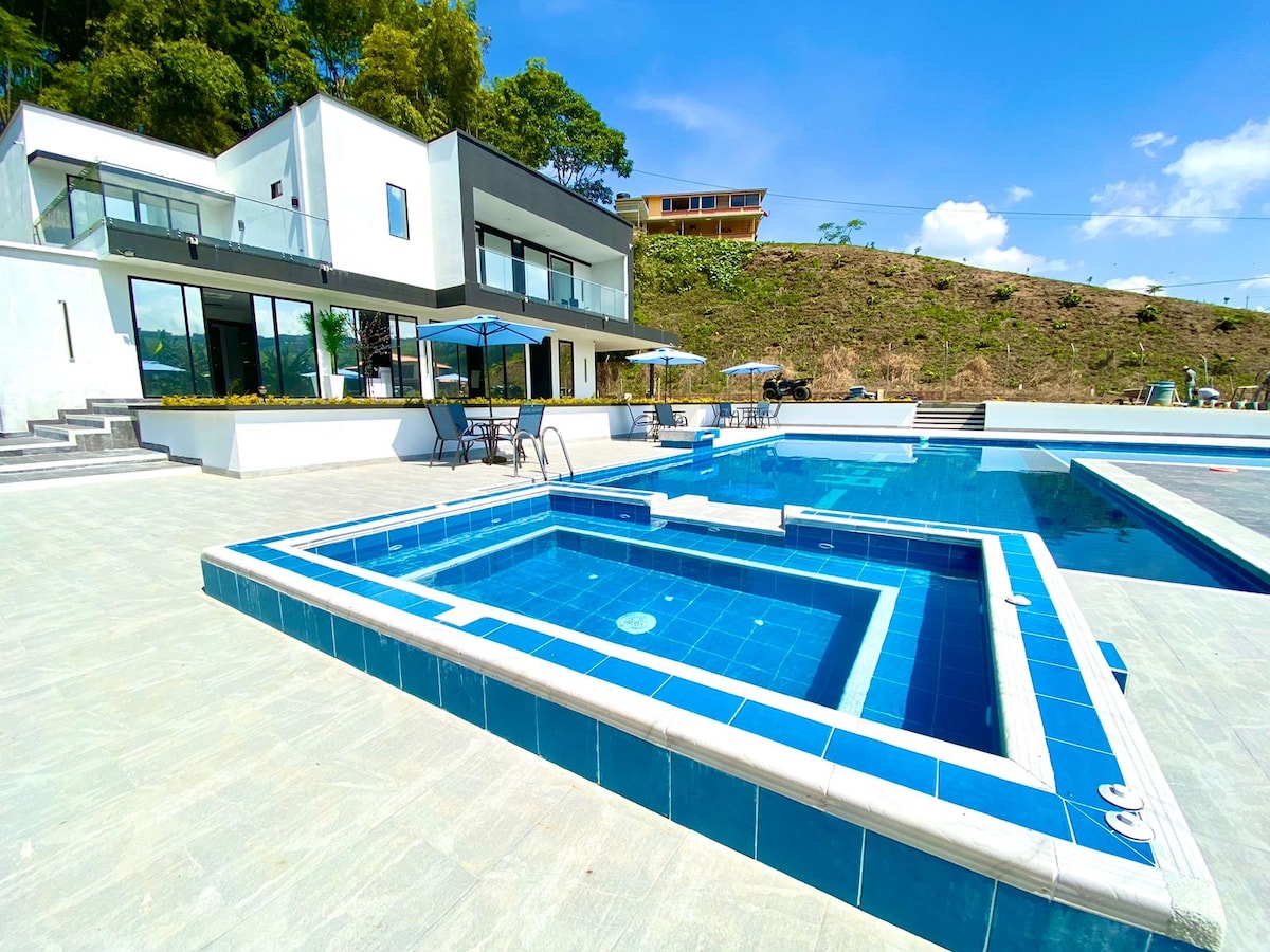 🍃🏠Disfruta de la energía del sol y la serenidad de la naturaleza en un espacio único para descansar y conectar. Desde aquí, podrás admirar vistas impresionantes y vivir atardeceres inolvidables. A tan solo 28 minutos de Manizales (12 km), es el escape perfecto de la rutina urbana. Disfruta de un Jacuzzi Climatizado, Piscina con tratamiento salino, y zona BBQ. Nuestra casa es ideal para tu familia o grupo de amigos Nota: La habitación principal (familiar) permanecerá cerrada durante tu estadía.