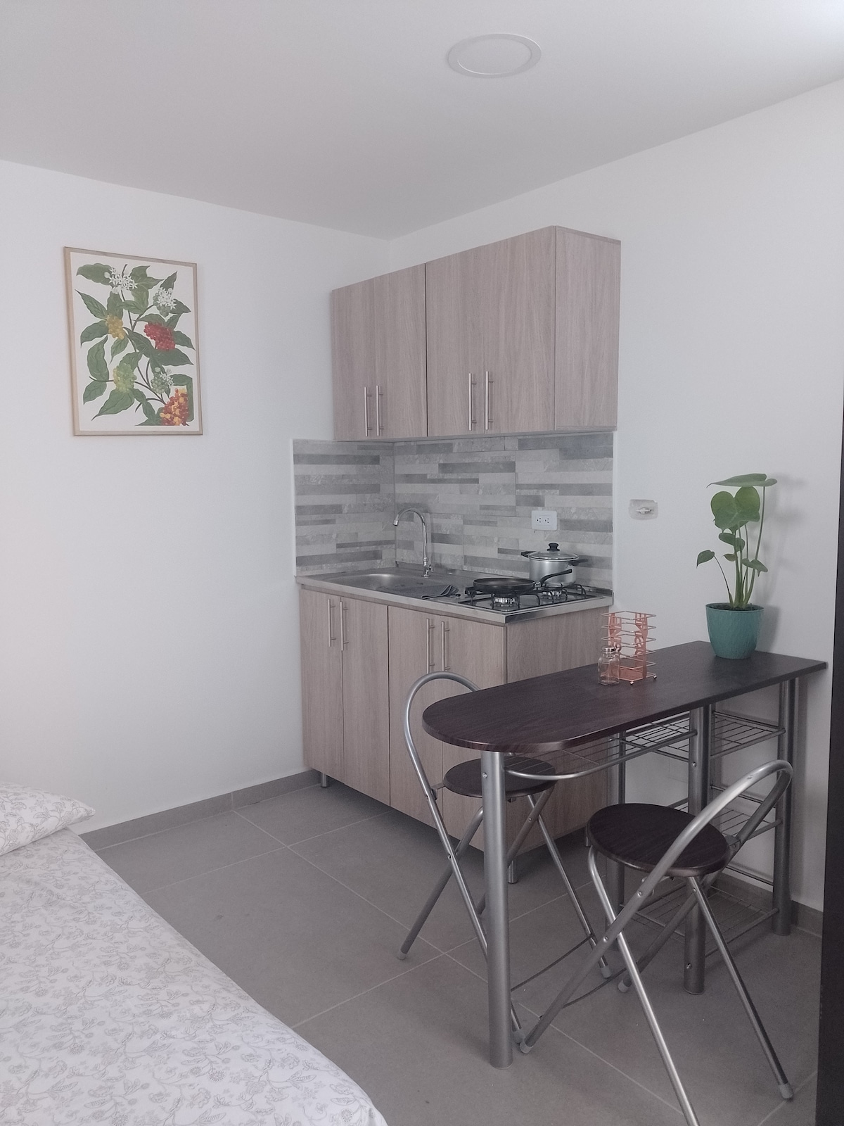 Brand new beautiful studio apartment, equipped kitchen with appliances and utensils. Laundry room with washer and dryer, a fast wifi network and working space. It is located right on the Milan's boulevard (Paseo de Milan-Zona G) on Carrera 23. Close to all the most famous restaurants, bars and the bowling alley. Very safe area with excellent access to public transportation. Three blocks from "El mirador de Niza", about 10 minutes walk to "El Cable". Private building.