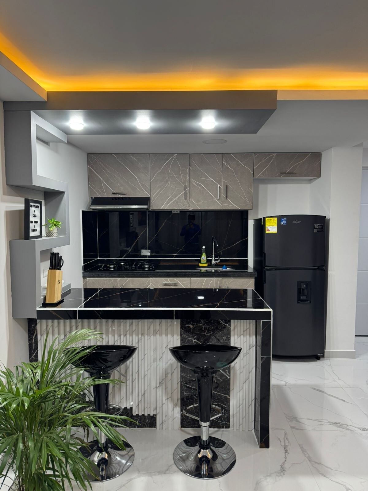 Ven y disfruta de un apartamento nuevo ya sea para ti solo,con tu pareja o con toda tu familia donde encontrarás: 1. Jacuzzi para dos personas dentro del apartamento. 2. Parque acuático con toboganes balde y piscina de adultos y niños. Jacuzzi Área de bronceo. 3. Estacionamiento vigilado y gratuito. 4. Chapa inteligente para ingreso automático. 5. Cama king 2x2 gigante para descanso absoluto. 6. Cocina amplia y dotada para las mejores recetas. 7.Cancha de baloncesto y micro futbol.