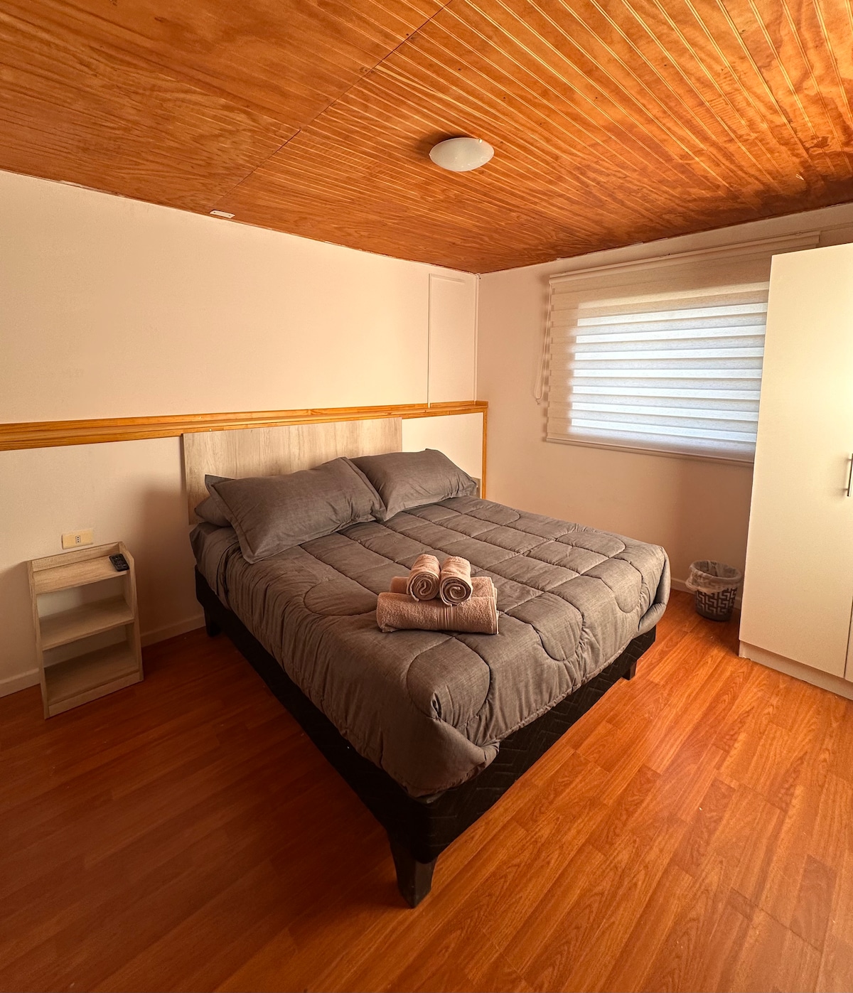 Se arrienda hermosa y cómodo apartamento interior tipo cabaña independiente, equipada para 1 a 4 personas, con dos habitaciones, cada una cuenta con cama matrimonial y un futón en el living. Es totalmente privado, con baño, cocina equipada, living comedor. no cuenta con estacionamiento privado. Esta cabaña esta a una cuadra de la Plaza de Armas, Playa Mansa, por su ubicación y seguridad la hacen una excelente opción para familias , fácil locomoción a Bahía Inglesa