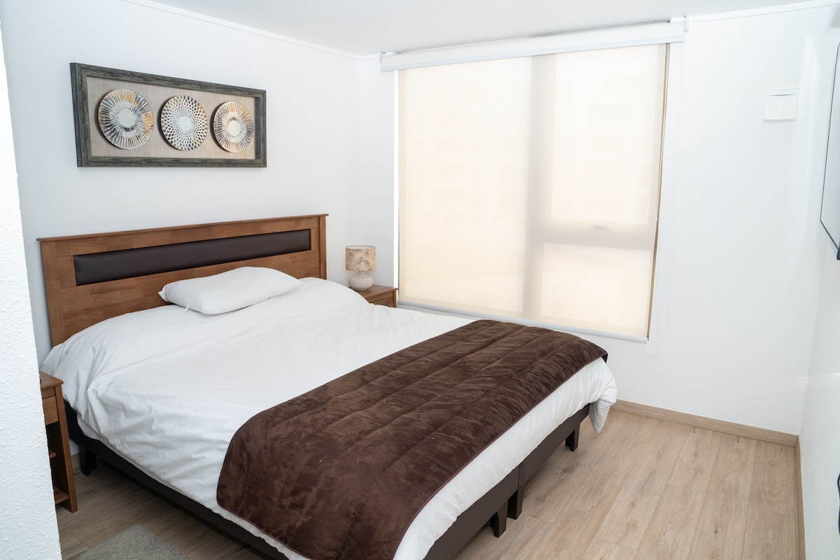 ¡Bienvenido a tu hogar en Caldera! Disfruta de este acogedor departamento en un condominio cerrado con acceso controlado 24/7, ideal para relajarte y conocer las mejores playas de Chile. Ubicación inmejorable: A pasos del centro, cerca de restaurantes, supermercados y a minutos de Bahía Inglesa. Todo lo que necesitas lo tienes a la mano. Piscina al aire libre, quincho y estacionamiento privado. Además, contamos con Wifi, sábanas y toallas.