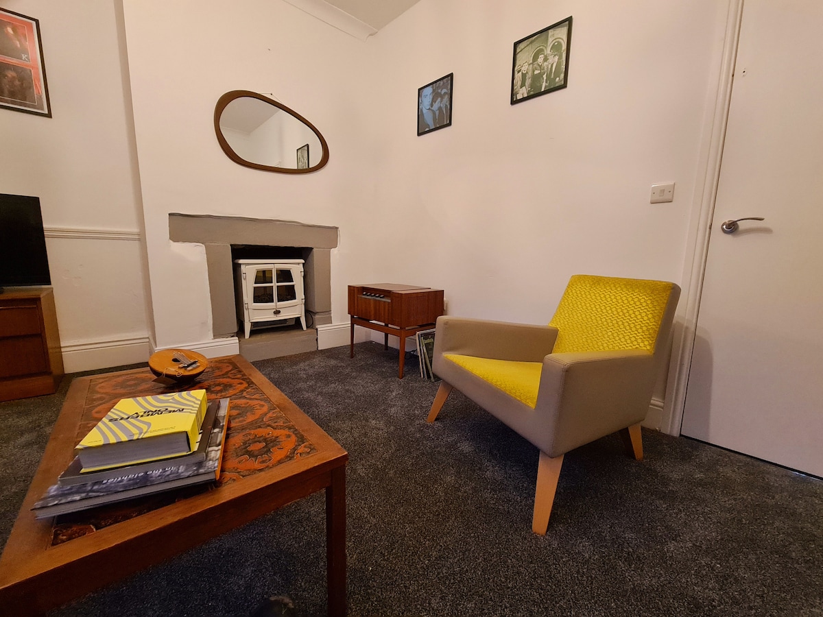 A quirky two bedroom apartment, located in the centre of Hebden Bridge. Featuring a cosy lounge with a guitar, record player and a selection of vinyl for you to enjoy. The kitchen/diner is fully equipped while the outside balcony offers a further dining space al fresco. Located just a stone's throw from local shops, cafes, and music venues, you'll have everything you need right on your doorstep. Explore the scenic countryside, enjoy live performances, or simply unwind in our musical retreat.