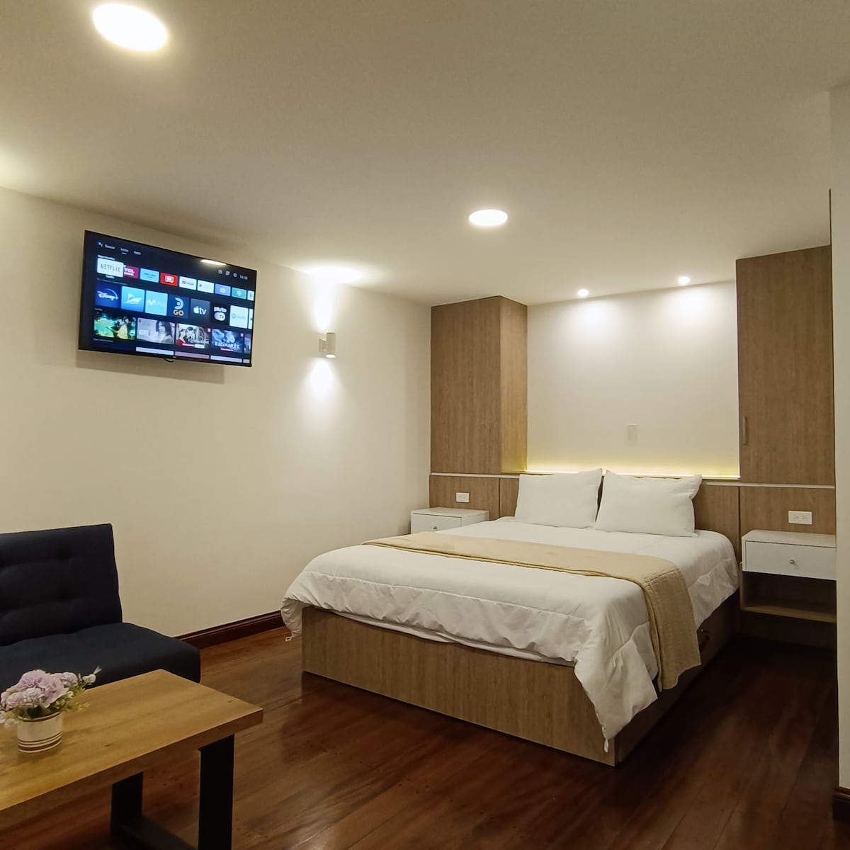 A solo pasos del tranvía de Cuenca, en la encantadora calle Tarqui, cerca de las iglesias más históricas de la ciudad y a solo dos cuadras del icónico Parque Calderón—hogar de los mejores bares y restaurantes—se encuentra Tarqui Suites. Ubicada en el primer piso de este edificio histórico, tu suite privada cuenta con todo lo necesario para una estancia cómoda, incluyendo baño privado y cocina completamente equipada. Disfruta de una estadía elegante y conveniente en el corazón de Cuenca.