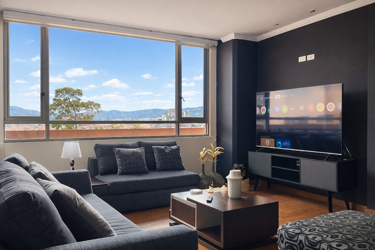 Ubicada en el exclusivo edificio TERRAZZA, cerca de áreas verdes y recreativas. A solo 5 minutos en auto del centro histórico y zonas comerciales. Disfruta una estadía de lujo en esta moderna suite con dos balcones privados: uno con vista a las montañas y otro al parque. Cuenta con un baño completo y uno social, cocina equipada, sala acogedora, dormitorio elegante, parqueadero privado, acceso gratuito al gimnasio y seguridad 24/7.