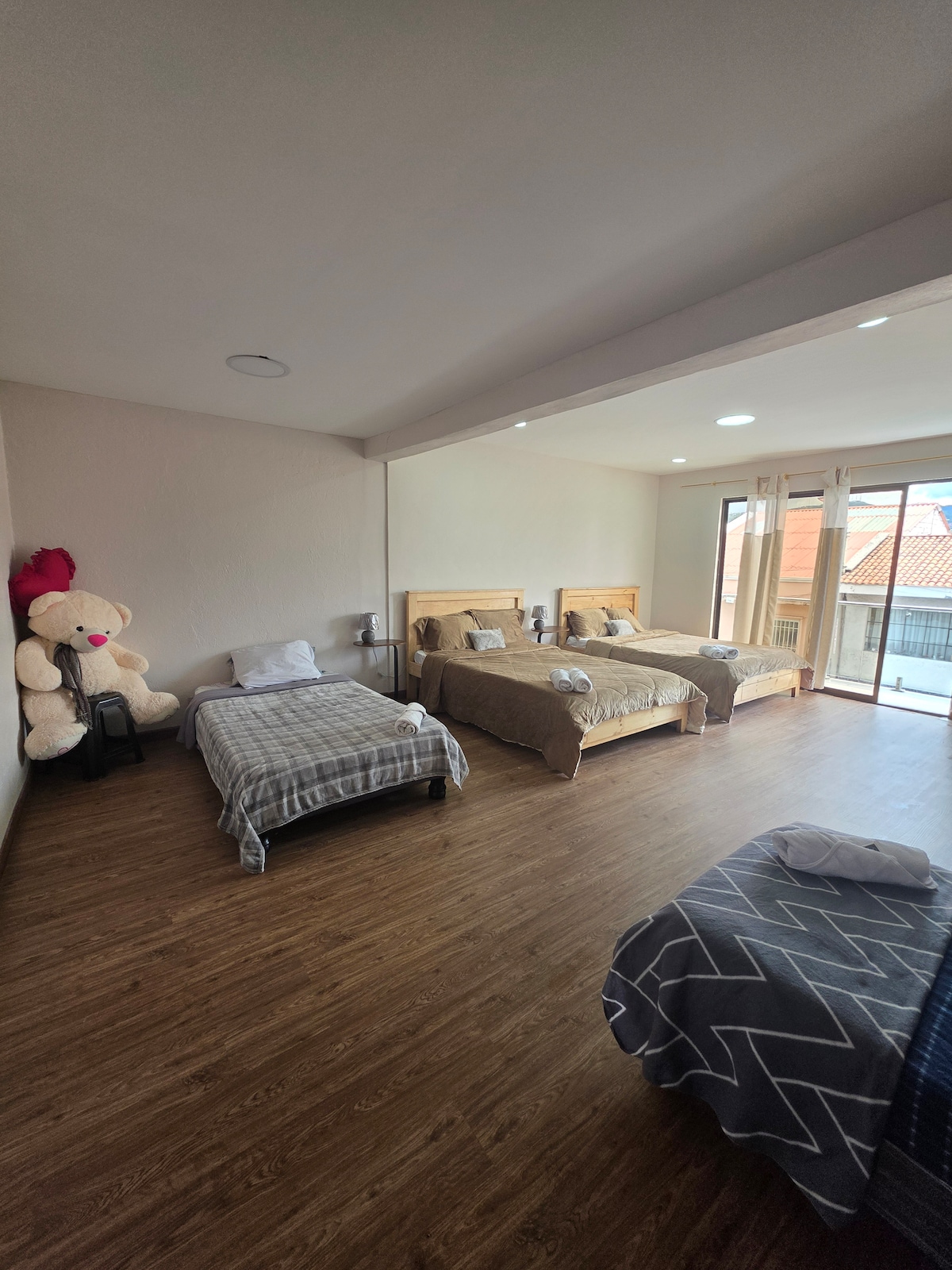 Suite acogedora y bien equipada, ideal para una estadía cómoda y tranquila. Cuenta con dormitorio amplio, ropa de cama confortable, clóset con toallas, sala con sofá-cama cómodo, y kitchenette funcional con microondas, cafetera, nevera. Espacios limpios, iluminación cálida y acabados en madera que brindan una sensación de hogar. Ubicación estratégica, perfecta para descansar o trabajar con comodidad. Cerca del estadio, el centro histórico, el aeropuerto y plazas comerciales.