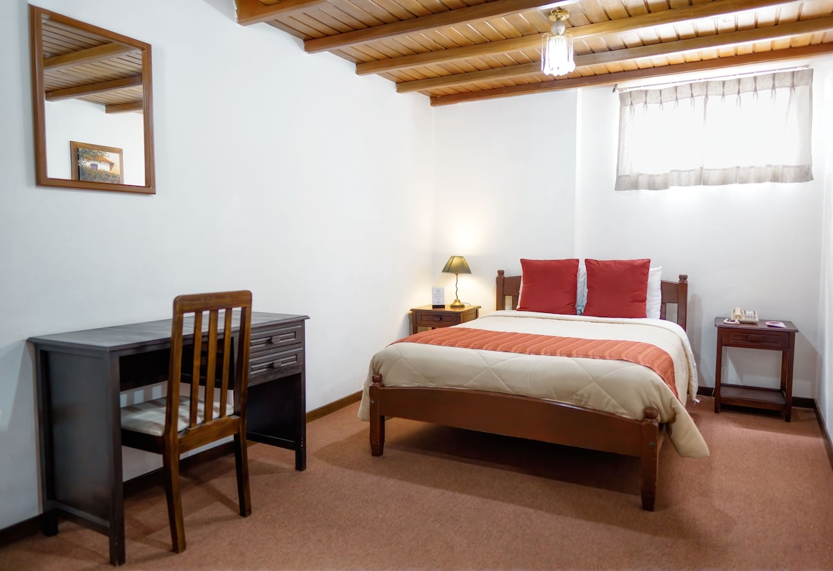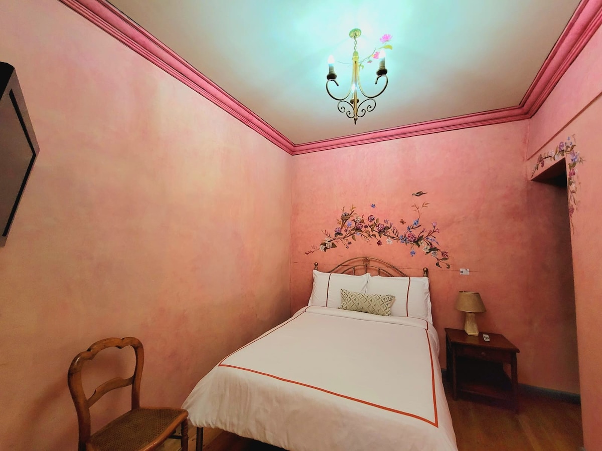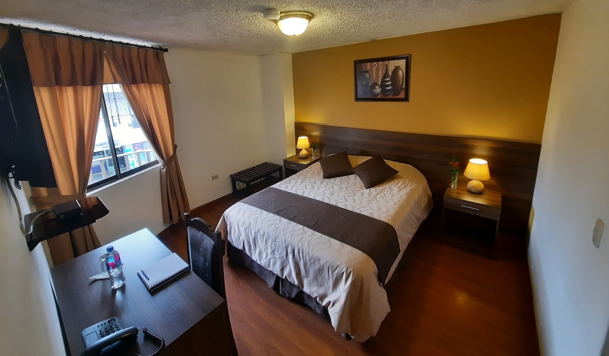 Superior Double Room for 1 to 2 people with a double bed and private bathroom at Pepe's House Cuenca Hotel & Boutique Hostel in Cuenca's Historic Center. Blackout curtains. Buffet breakfast included + free coffee/tea/cookies all day. Free parking from 6 p.m.-8 a.m., TV with children's and family channels. Quiet policy from 11 p.m. to 6 a.m. for a better night's sleep. 13 minutes from the airport. Bilingual receptionists from 7 a.m. to 9 p.m., and free luggage storage (for check-in and check-out)