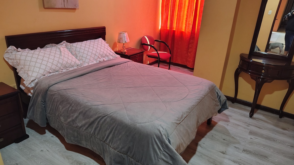 Cómoda habitación con baño privado. Ideal para personas que viajan por trabajo o por salud. ¡La comodidad de un hotel con tarifas excelentes por estancias prolongadas! Disponen de: cama Queen, agua caliente, wi-fi, smart-TV. Solo cocina es compartida. Disponemos de parqueadero seguro. Ubicado cerca de varios parques, zona hospitalaria, y numerosos restaurantes.