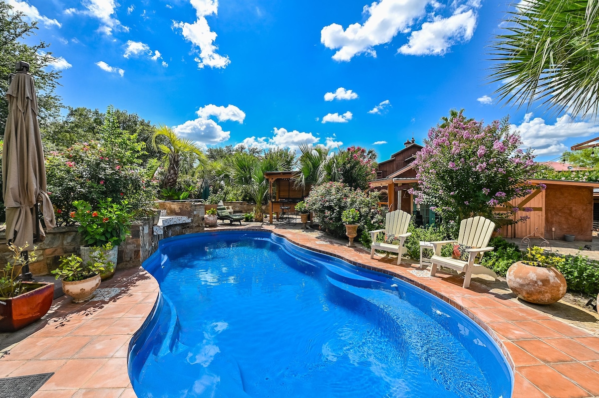 You'll feel like you're a million miles from civilization, surrounded by beautiful flowers, goats, dogs, and horses, but yet you're only a short 30 minute drive into downtown Austin, 15 minutes from the airport and only 4 miles from COTA. Relax on your private patio, jump in the pool, or play target golf. You'll feel like you're at a private resort.