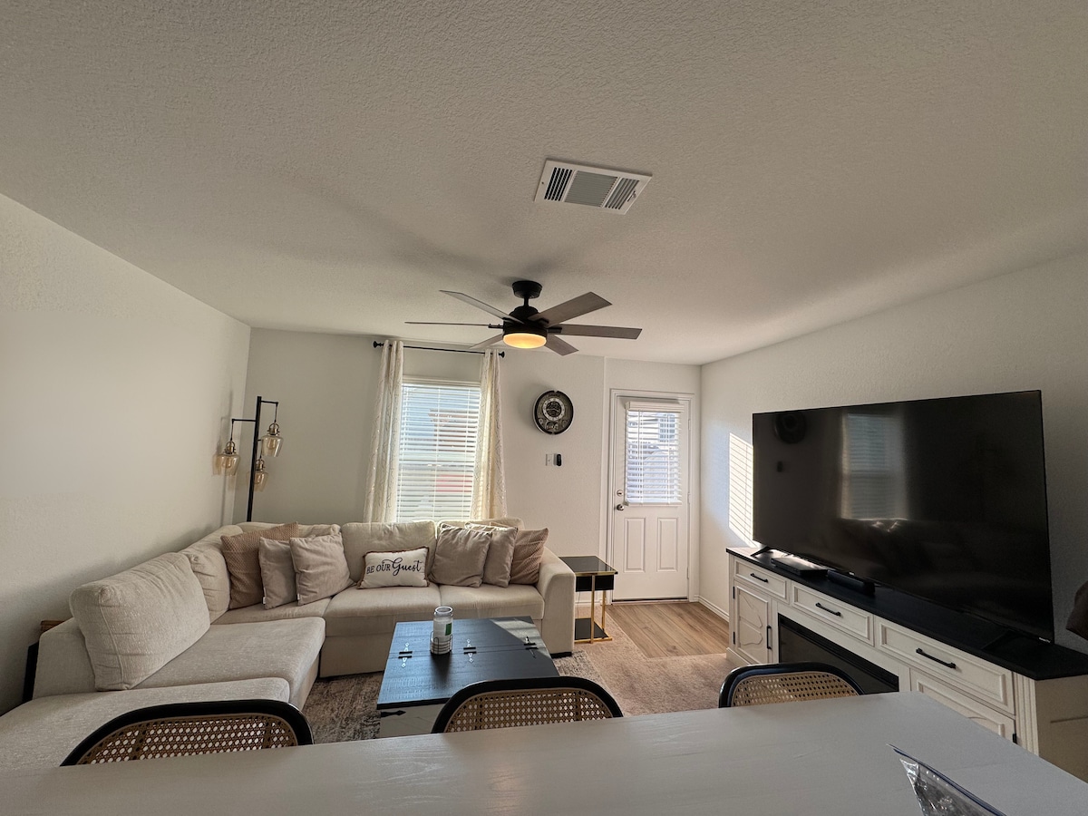 Relax and unwind in this bright, peaceful home Enjoy a cozy living room with a modern fireplace, and a comfortable sofa to watch your favorite shows. Perfect for families, groups, or anyone looking for a quiet stay close to everything. 🕒 Convenient location: • 20 min to Downtown Austin • 23 min to Circuit of the Americas (COTA) • 20 min to Austin-Bergstrom Airport • 35 min to San Marcos Outlets 🛏️ The space includes: • Fully equipped kitchen • Private parking • Peaceful neighborhood