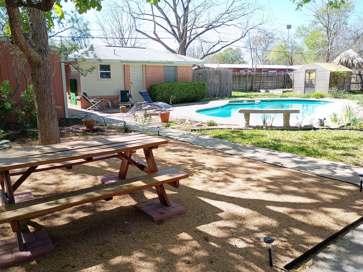 Relax at this unique and tranquil getaway. You'll feel like you are in the middle of nowhere, yet all of the best features of Central Texas are only minutes away. We are 4 miles from Circuit of the Americas, 8 miles from McKinney Falls, 30 minutes from downtown Austin, 30 minutes from the outlet malls in San Marcos, or you can just hang out on the property and enjoy the pool, the patios, the goats, and the flowers.