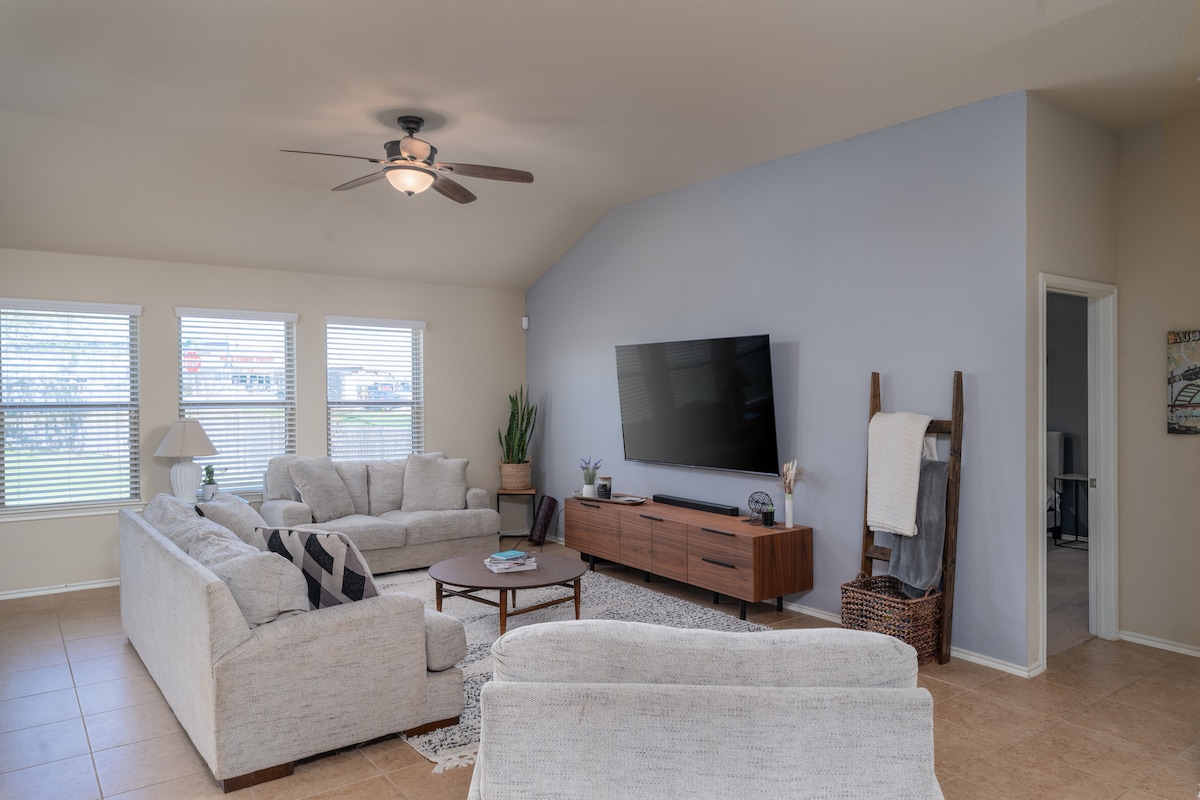 Welcome to our recently built home, tastefully decorated, located just south of Austin with easy access to I-35, only 18 miles from Austin Airport and 17 miles from downtown Austin. Cabelas, Walmart, HEB, Restaurants, many popular food places are within a 2-mile distance. Great for those who plan to visit Austin and major events (Formula 1, ACL & SXSW). We have a special rate for weekly or monthly stay, a great housing option as you work on contract, visit relatives, or wait on housing.
