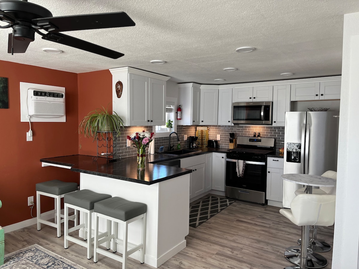 The Modern Farmhouse was recently remodeled with upscale amenities and everything you need for a comfortable stay! Enjoy your own delicious home cooked meals in the beautiful kitchen, gather in the dining room with seating for 8, enjoy a movie on Netflix or Disney+ on a huge 65" OLED 4K TV and 7.2 Klipsch Surround Sound with a large sectional providing seating for the whole family. Outside on the back patio you will find outdoor seating with a fire pit, a hot tub for 5, and a 6 burner BBQ.