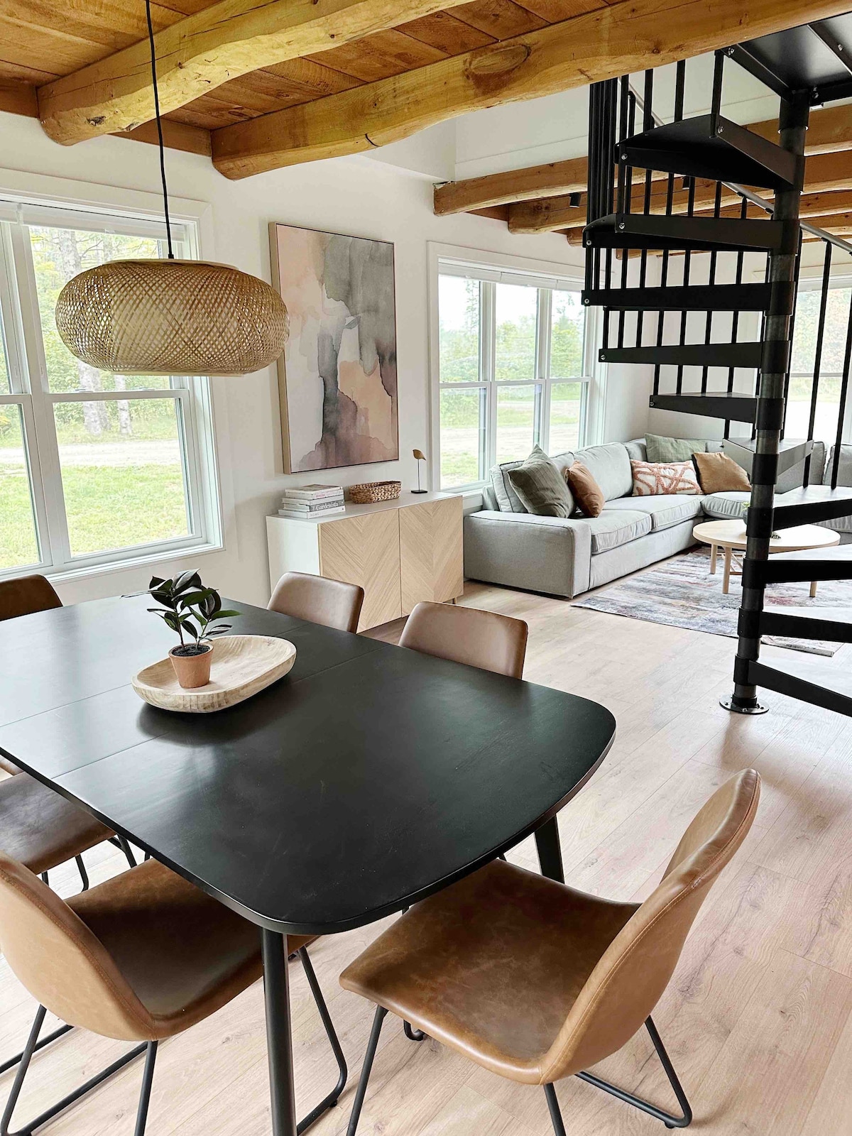 Newly renovated home in the Northeast Kingdom with massive windows overlooking the forest. Scandinavian, minimalist style with comfortable high-end mattresses and large sectional sofa for the whole family. Two bedrooms, each with a king bed and twin trundle for sleeping flexibility. You’ll love this quiet getaway located on a dirt road 5 mins to the world-renowned Kingdom Trails network and 10 mins to Burke Mountain.