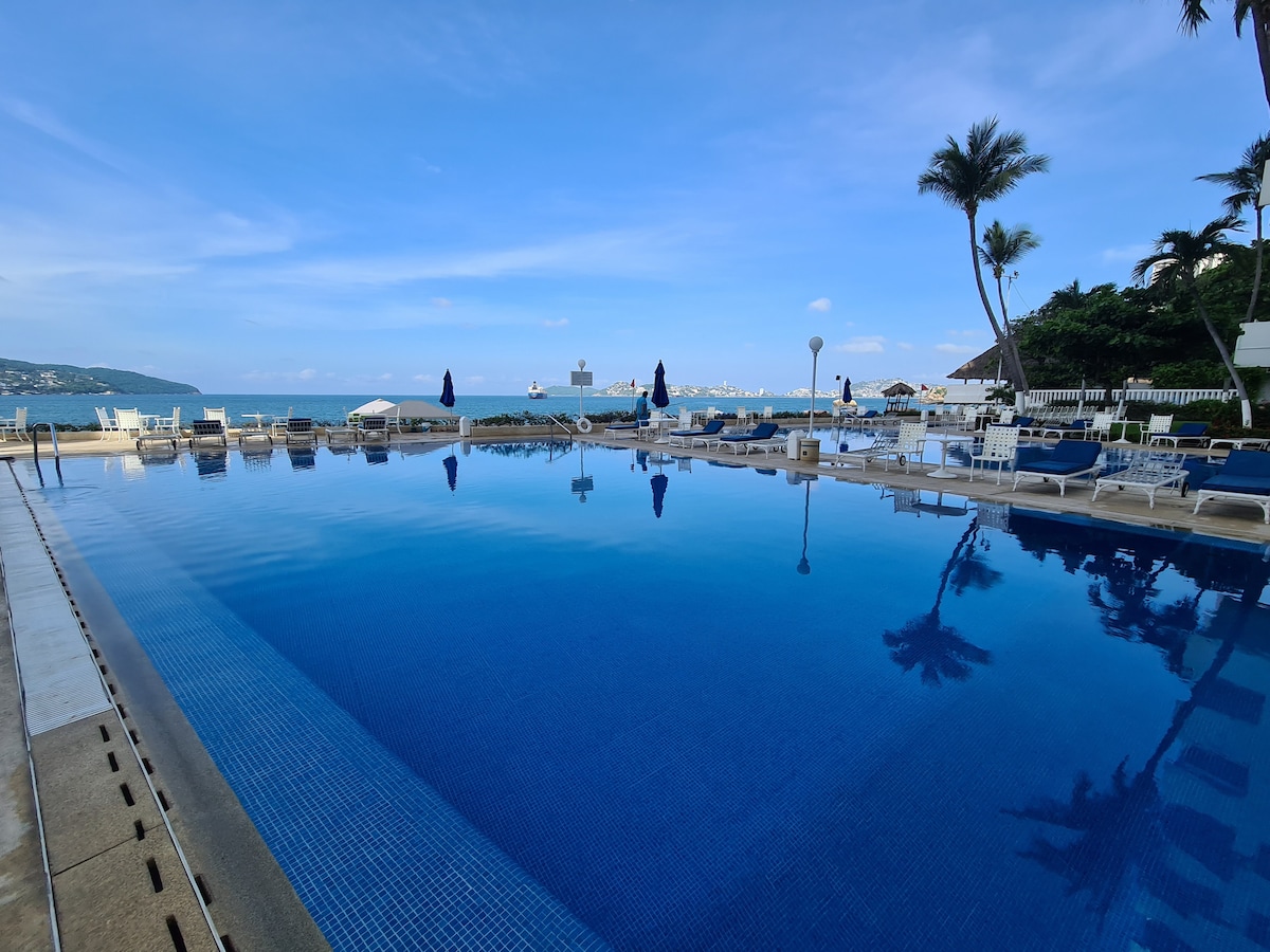 Exclusivo departamento de 270 m en Acapulco Diamante, con playa propia. Excelente vista al mar: Terraza, recamara 1 y 2, sala-comedor. Cuarto 3 vista al campo de golf. Cuenta con 3 recamaras 3 baños. Amplia terraza con mesa para 8, camastros, amaca y sillones. Al bajar y salir del elevador podrás cruzar el lago para llegar a las albercas y después a la playa. Ideal para relajarte y consentirte en sus albercas o palapas . Excelentes restaurantes y servicios como campo de golf, canchas de tenis.