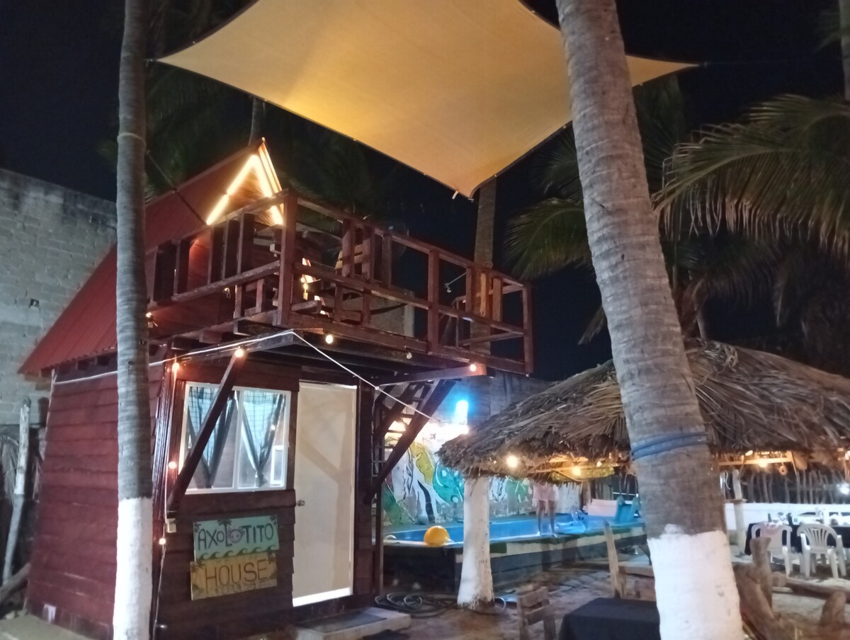 Casita funcional, ideal para parejas. Acceso directo al LAGO; PLAYA cruzando la calle. 1 dormitorio cama King, tv42" con A/C, baño, sala y comedor para 4 personas, cocina equipada, pequeña terraza y decoración acogedora. ÁREAS COMUNES COMPARTIDAS: compartes alberca grande, palapa y muelle con otras 3 casas dentro del mismo terreno. La palapa cuenta con sala, comedor y cocina para uso de los huéspedes. Incluye estacionamiento para 1 auto. LA TARIFA CAMBIA SI SON 2, 3 ó 4 PERSONAS.
