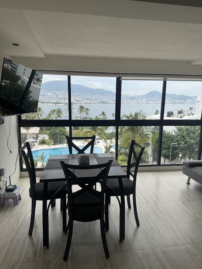 Disfruta de la vista panorámica de la bahía de Acapulco, una vista inmejorable si tu intención es disfrutar todas las mañana y ver el azul del mar y por qué no si vienes en Año Nuevo disfrutar del espectáculo de fuegos artificiales. Porque sabemos que son parte de nuestra familia, nuestro amigos peludos (Perros) de raza pequeña son bienvenidos. AÑO NUEVO Y NAVIDAD MINIMO 4 NOCHES SOLO CONTAMOS CON WIFI POR EL MOMENTO NO CONTAMOS CON VENTANALES EN SALA Y COMEDOR.
