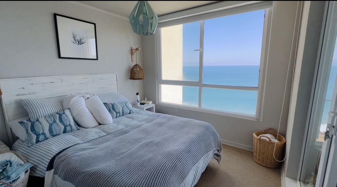 Relájate con toda la familia en este tranquilo lugar para quedarse. Disfruta del mar con una vista privilegiada, despierta con su sonido y contempla desde tu cama el océano. Acceso a playa de forma directa. Fuera de condominio también accedes a playas a 5 minutos como Cau Cau, El Tebo, entre otras. Además cancha de pádel, futbol, sin costo. Hay vidrios en altura que no podemos limpiar ya que estamos en un edificio para tenerlo en consideración.