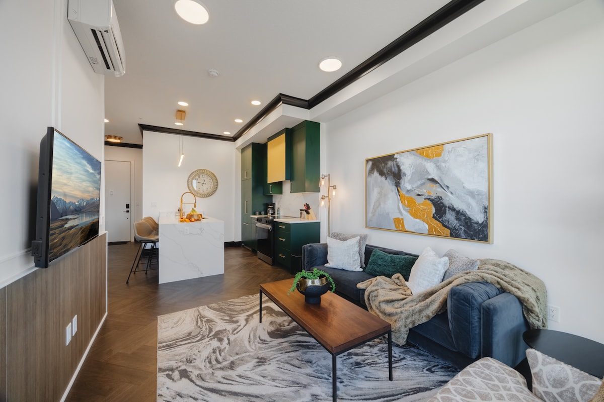 Welcome to your perfect escape @ 6th and Tenth—a warm, stylish 11th-floor condo that feels just like home. At night, unwind in the balcony’s hanging chair and take in sparkling Calgary Tower views. Inside, relax in the open-concept living area with a cozy fireplace and gourmet kitchen. The bedroom offers skyline views and great storage. With chic concrete accents, in-suite laundry, smart TV, high-speed Wi-Fi, FREE parking, plus pool and gym access—book your stay today!