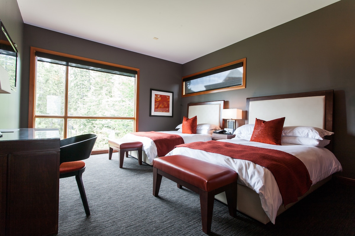 Perfect for families or small groups, this two-queen room provides space and comfort for a restful night. The hotel’s location near Fish Creek Park makes it ideal for outdoor enthusiasts. Free parking and nearby public transit make city exploration hassle-free.