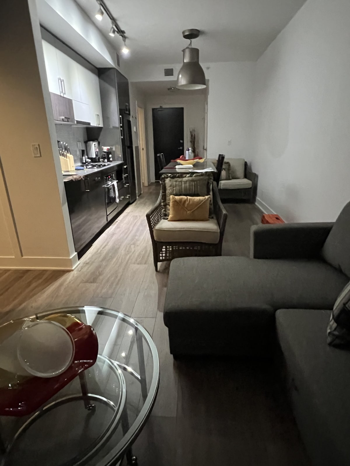 Travel like royalty in our presidential suite! • Lightning fast internet • Panoramic city views • Onsite, heated secured underground parking for one vehicle • Gym, private balcony, shared terrace, huge living room, seasonal pool • Fully stocked kitchen • Walk score: 97 (located downtown) • 2 beds, 1 bedroom