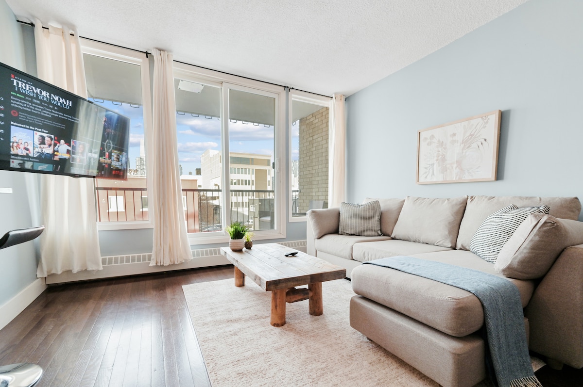 Our chic condo is nestled in the trendy community of Mission, steps away from Calgary’s iconic 17th Avenue and a short stroll to Stampede park! Stay near by Calgary’s urban oasis, walking distance to grocery stores, local eateries, shops, and world-renowned restaurants. Whether you're a local resident or visiting our beautiful city, there is no better accommodation to immerse yourself in everything Calgary has to offer! No A/C in unit