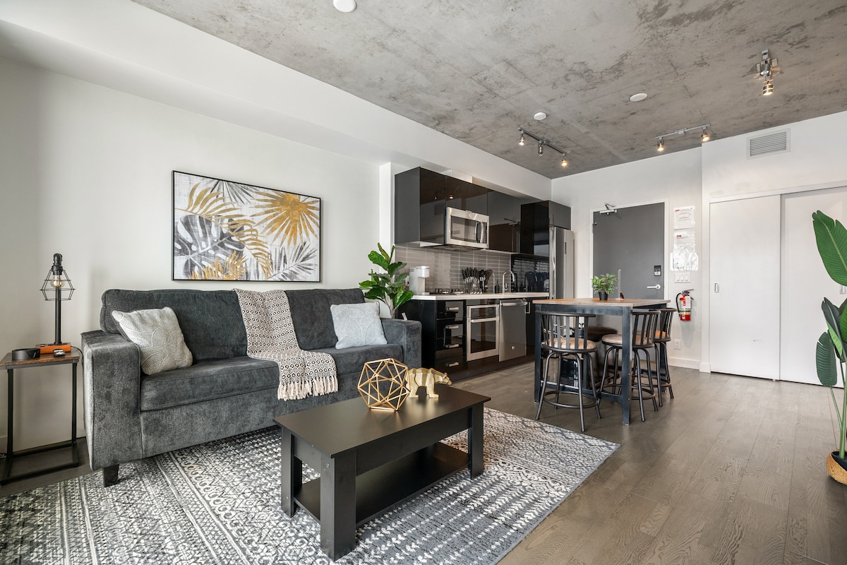 Live life in style at this amazing 2-bed condo with breathtaking downtown skyline views! Enjoy unique features like floor-to-ceiling windows, polished concrete floors, and stylish furnishings. Marvel at sunsets over the Rocky Mountains from your living room! Walk to Calgary's hottest restaurants, nightlife, and events. Located near Proof, Ten Foot Henry, Native Tongues, 17th Ave SW, and the Calgary Saddledome & Stampede Grounds! Don't miss this opportunity to stay at Calgary's finest!