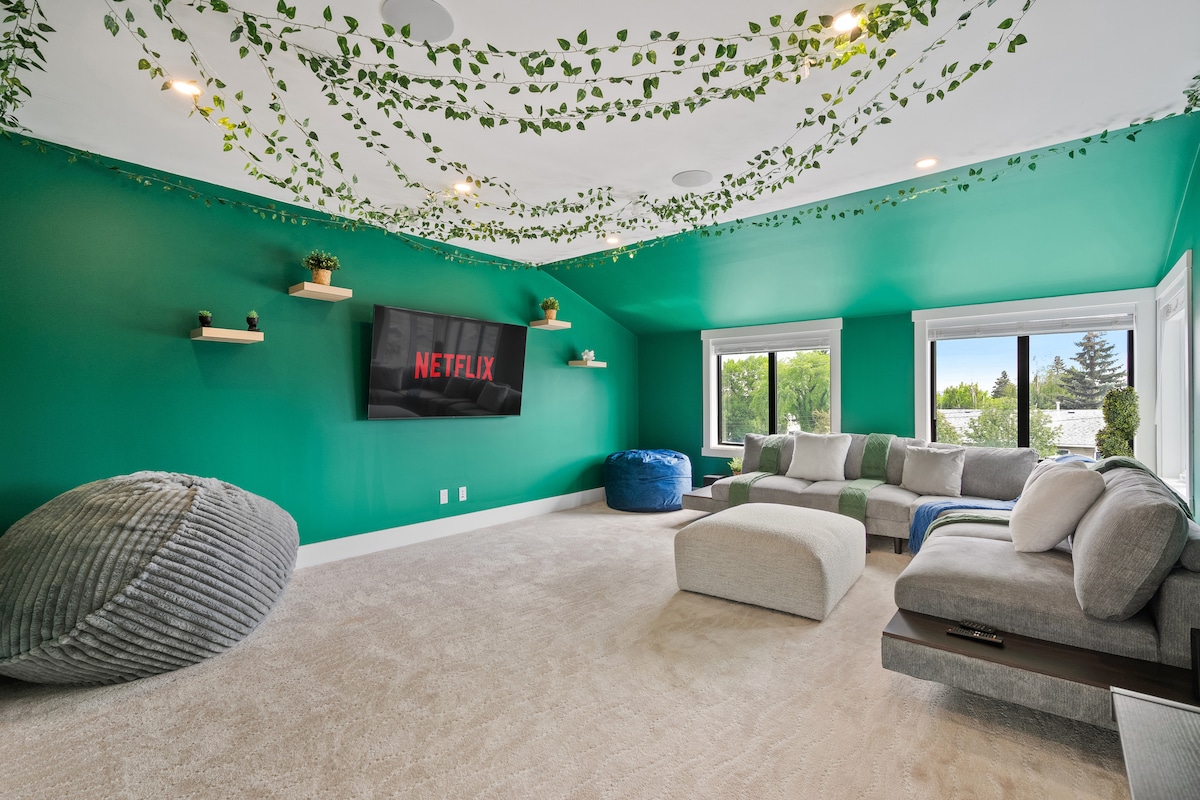 About the Blue Bungalow Enjoy your stay at 'The Blue Bungalow'. A 4 bed, 2 full bath tastefully renovated and decorated home in Southwest Calgary. It is fun, bright, and sleeps 8 comfortably, we have board games, foosball, arcade games, a chalk wall, two 55" TVs, A/C, a gas BBQ, and plenty of parking & a garage. It’s Nicely furnished, in a great location with plenty to do for everyone, see our list's below of highlights of our home & things near by. Perfect for your next Calgary stay