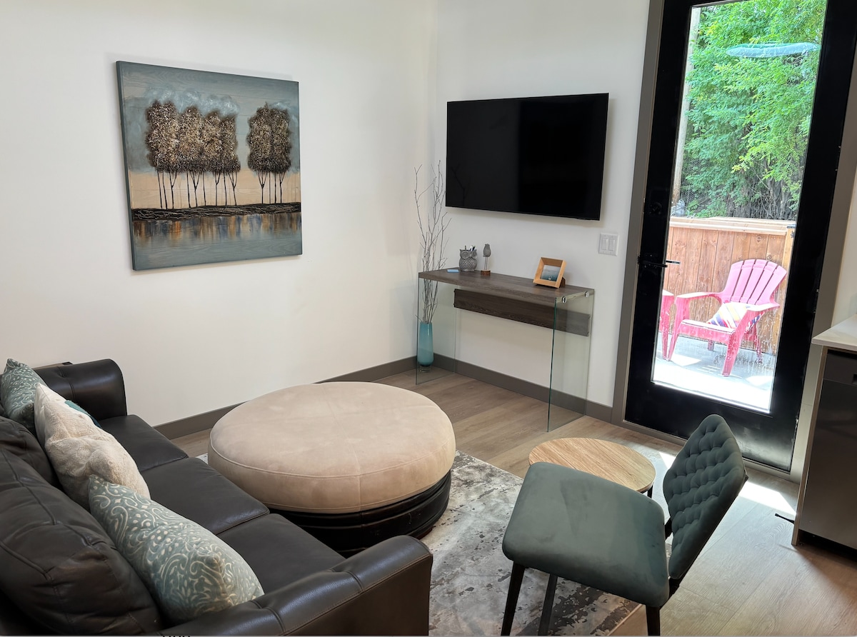 🏔️ Mountain Escape – stylish, modern 1BR condo in Rockland Park. 📍 Location: 1 hr to Banff/Canmore 🍳 Kitchen: stainless steel appliances, fully stocked essentials 📺 Entertainment: 55" 4K TV + PS5 💻 Work: height-adjustable desk & chair 🌐 Wi-Fi: 1 Gbps 🔒 Security: 24/7 self check-in, smart lock, exterior camera 🧺 Laundry: in-suite washer & dryer 🚗 Free Parking 🌿 Outdoor: Patio with picnic table, near walking trail Perfect base for couples or small families—book now to lock in your dates!