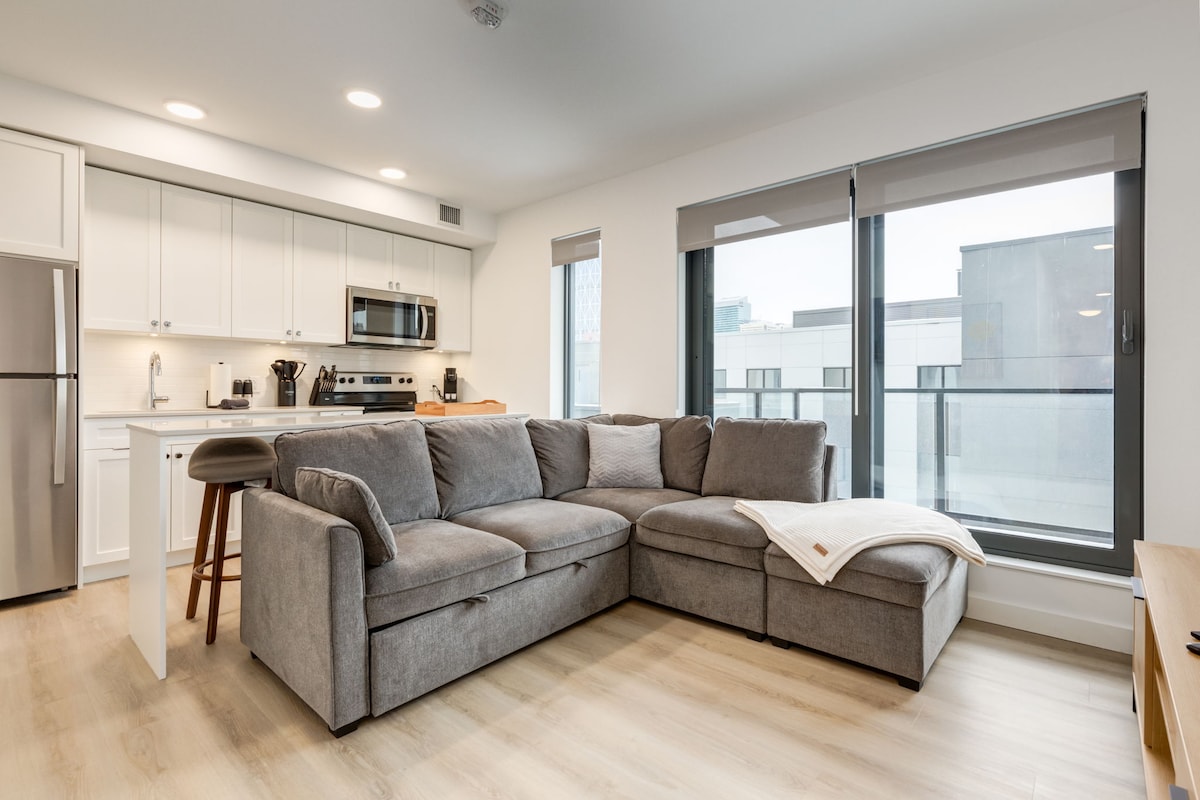Experience downtown Calgary from the 10th floor of a modern Beltline condo with sweeping skyline views. This 1-bedroom retreat features a Memory Foam cozy king size bed, pull-out sofa, full kitchen, private balcony, and free heated parking. Steps from 17th Ave, Stampede Park, and Calgary’s best dining and nightlife—perfect for business or leisure stays.