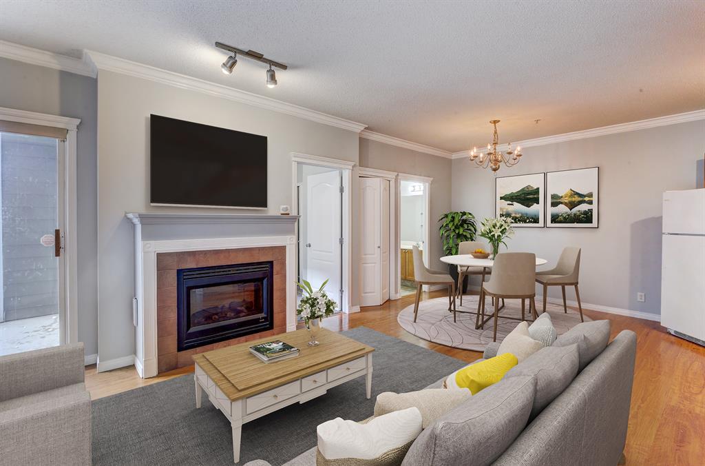 As you step inside, you'll be greeted by a spacious and modern living area adorned with contemporary furnishings and chic decor. The open-concept layout seamlessly connects the living, dining, and kitchen areas, making it perfect for socialising or relaxing with loved ones. Floor-to-ceiling windows not only flood the space with natural light but also offer uninterrupted views of Calgary's skyline.
