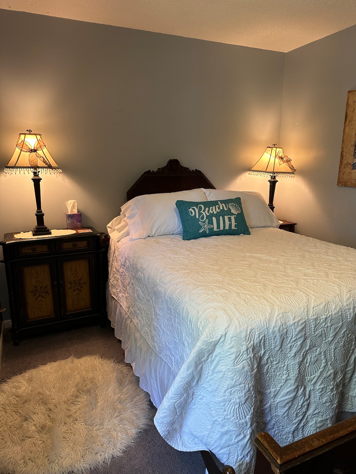Enjoy a peaceful experience at this centrally-located 2 Bedroom 2 Bath ranch with a 1 car garage. Featuring a fully equipped kitchen, coffee bar, 2 king beds, in room TVs, 65” TV with sound bar in living room, Catnapper reclining sofa and loveseat, enclosed patio with Webber grill and seating for 4. Located minutes from Chief Ladiga trail access at Fort McClellan Baltzel Gate. 15 minutes away from Jacksonville State University. 15 minutes to Oxford Exchange and Choccolocco Park.