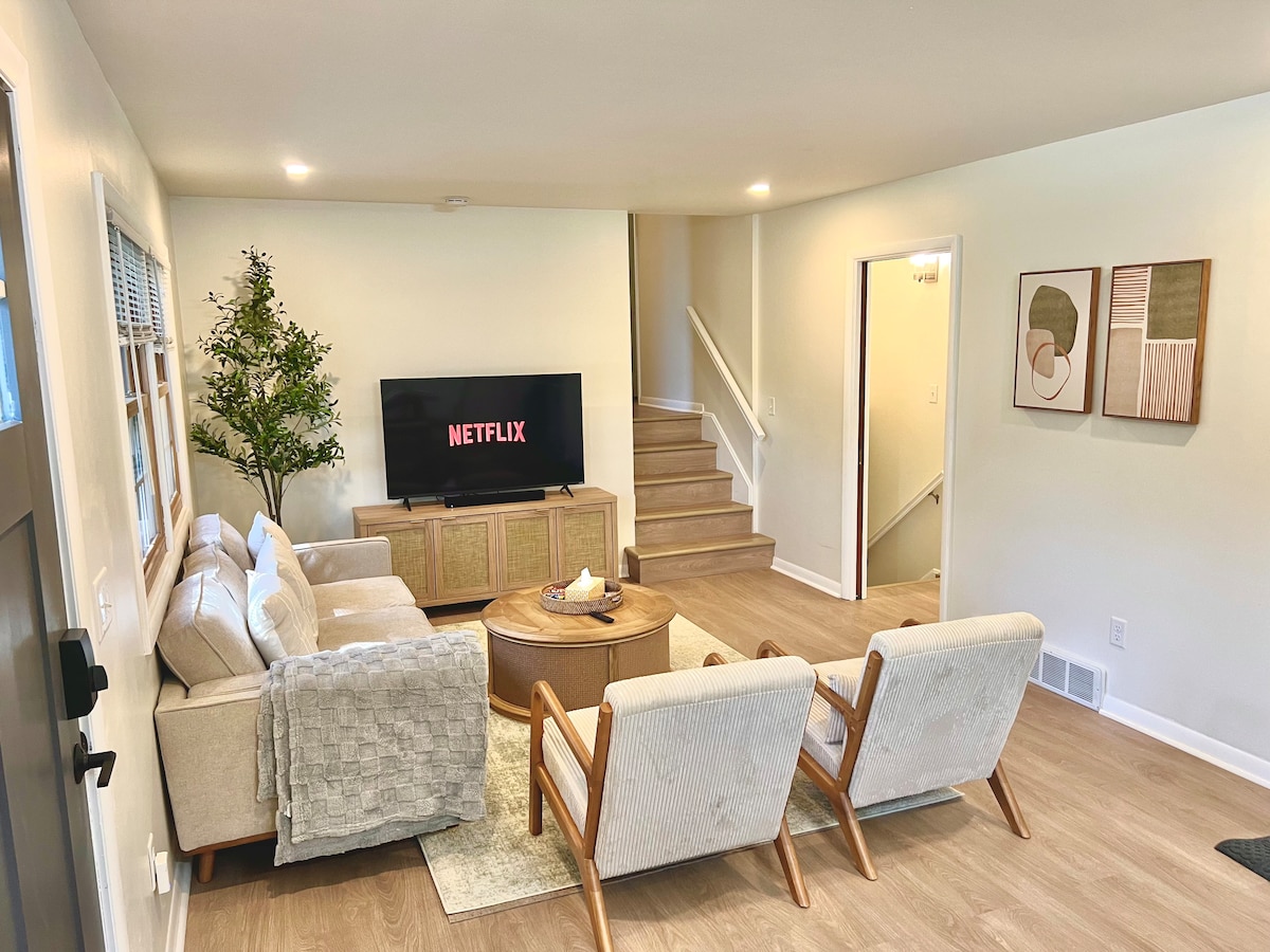 Kick back and relax in this calming, stylish home nestled in a quiet neighborhood. Our lovely retreat offers a relaxing getaway with a beautiful backyard featuring zen-like landscaping and ample outdoor seating. Enjoy the tranquility and find inspiration in our dedicated workspace for remote working. Just steps away from a picturesque lake, it's the perfect escape for those seeking a peaceful home away from home. Book your stay now and experience the perfect blend of comfort and relaxation.