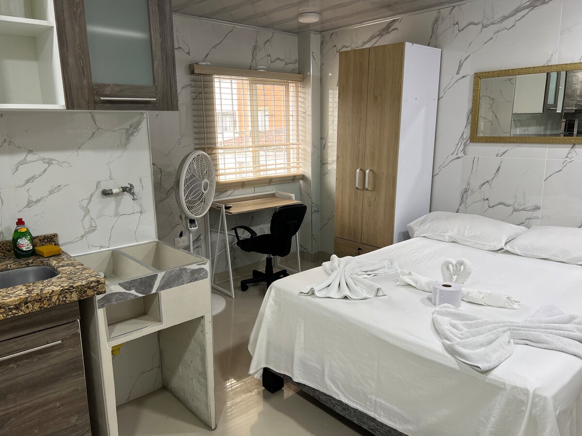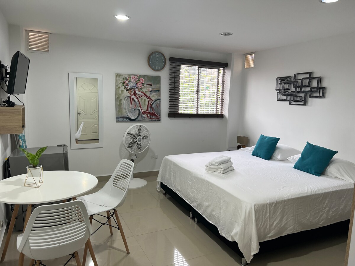 Apartaestudio 503, cómodo y funcional, con cama doble de 1.00m, dos ambientes, baño privado, cocina equipada y Smart TV. Diseñado para una estadía práctica y confortable. Nuestra ubicación estratégica cerca al boulevard del rio, calle del sabor, parque de los gatos, barrio San Antonio. Servicio de desayuno opcional con costo adicional, disponible bajo solicitud. ¡Vive la experiencia!